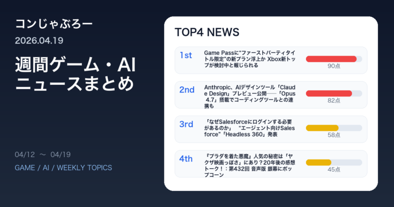 各ニュースが ゲーム業界全体に与える影響の大きさ を0〜100点で自動採点しています。
